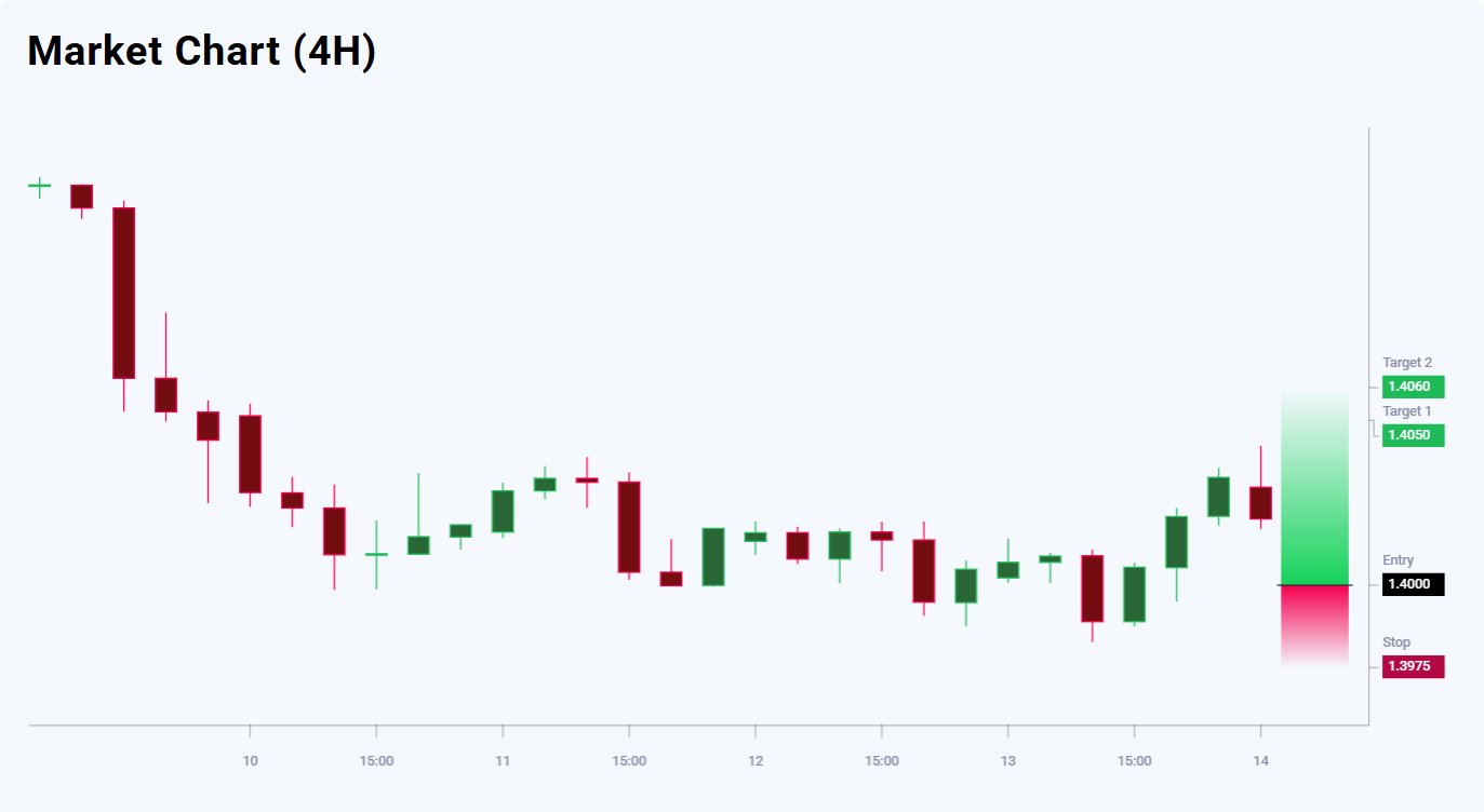 ยังไม่มีสัญญาณที่ชัดเจนว่าวัฏจักรขาขึ้นของคู่เงิน USDCAD จะสิ้นสุด แม้ว่าจะมีความเป็นไปได้ของการปรับฐานระยะสั้นก็ตาม ดังนั้น กลยุทธ์ที่แนะนำคือ “ซื้อหลังการย่อตัว” พร้อมตั้งจุดหยุดขาดทุนให้แคบ เพื่อคาดหวังแรงซื้อกลับมา การเคลื่อนไหวเหนือระดับ 1.4040 จะยืนยันโมเมนตัมขาขึ้น แนวคิดการเทรด USDCAD วันนี้แนะนำให้ตั้งคำสั่งซื้อแบบรอ (Buy Limit)