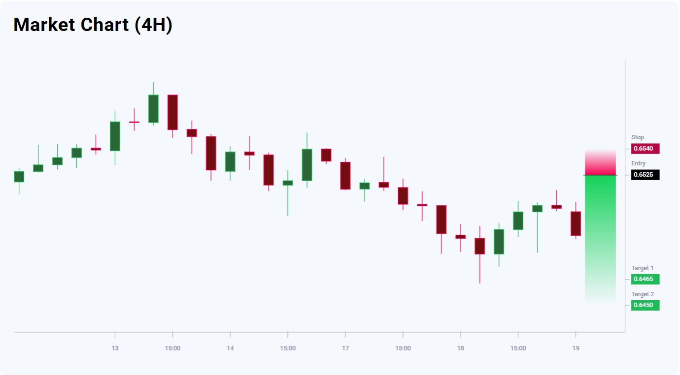แนวโน้มระยะกลางของคู่เงิน AUDUSD ยังคงเป็นขาลง โดยตัวชี้วัด RSI เคลื่อนไหวขึ้น ซึ่งบ่งชี้ถึงการดีดตัวชั่วคราวในระยะสั้น ดังนั้นกลยุทธ์ที่เหมาะสมคือ “ขายหลังจากการปรับขึ้น” พร้อมตั้งจุดหยุดขาดทุนที่แคบ ระดับแนวต้านสำคัญอยู่ที่ 0.6525 แนวคิดการเทรด AUDUSD วันนี้แนะนำให้ตั้งคำสั่งขายแบบรอ (Sell Limit)
