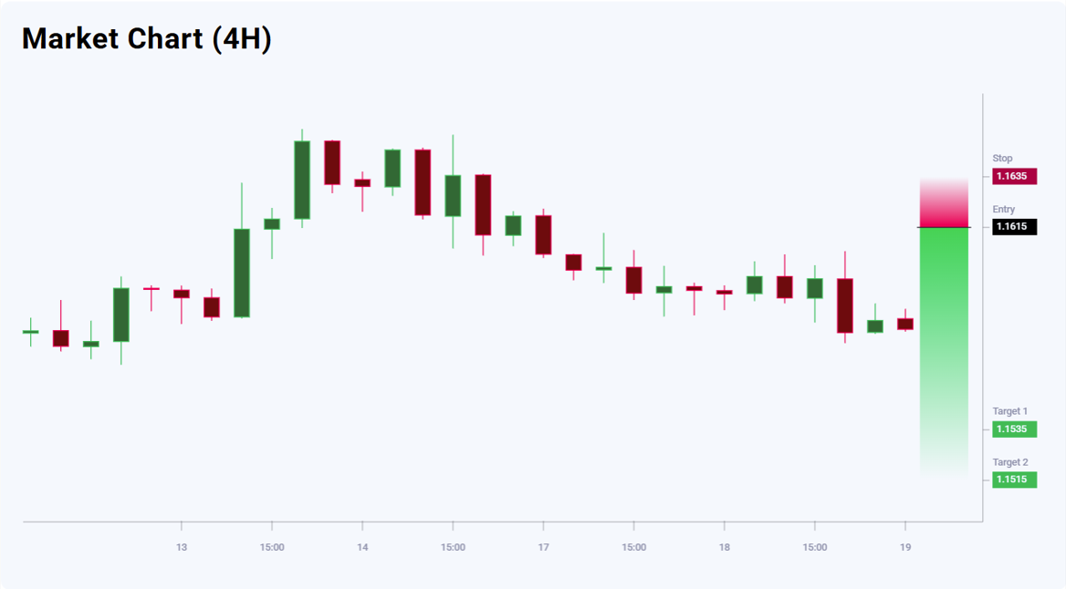 มุมมองของตลาดต่อ EURUSD แสดงอคติขาลง — 68% เทียบกับ 32% อัตราส่วนความเสี่ยงต่อผลตอบแทนอยู่ที่ 1:5 กำไรที่เป็นไปได้คือ 80 จุดสำหรับเป้าหมายแรก และ 100 จุดสำหรับเป้าหมายที่สอง โดยขาดทุนจำกัดไว้ที่ 20 จุด