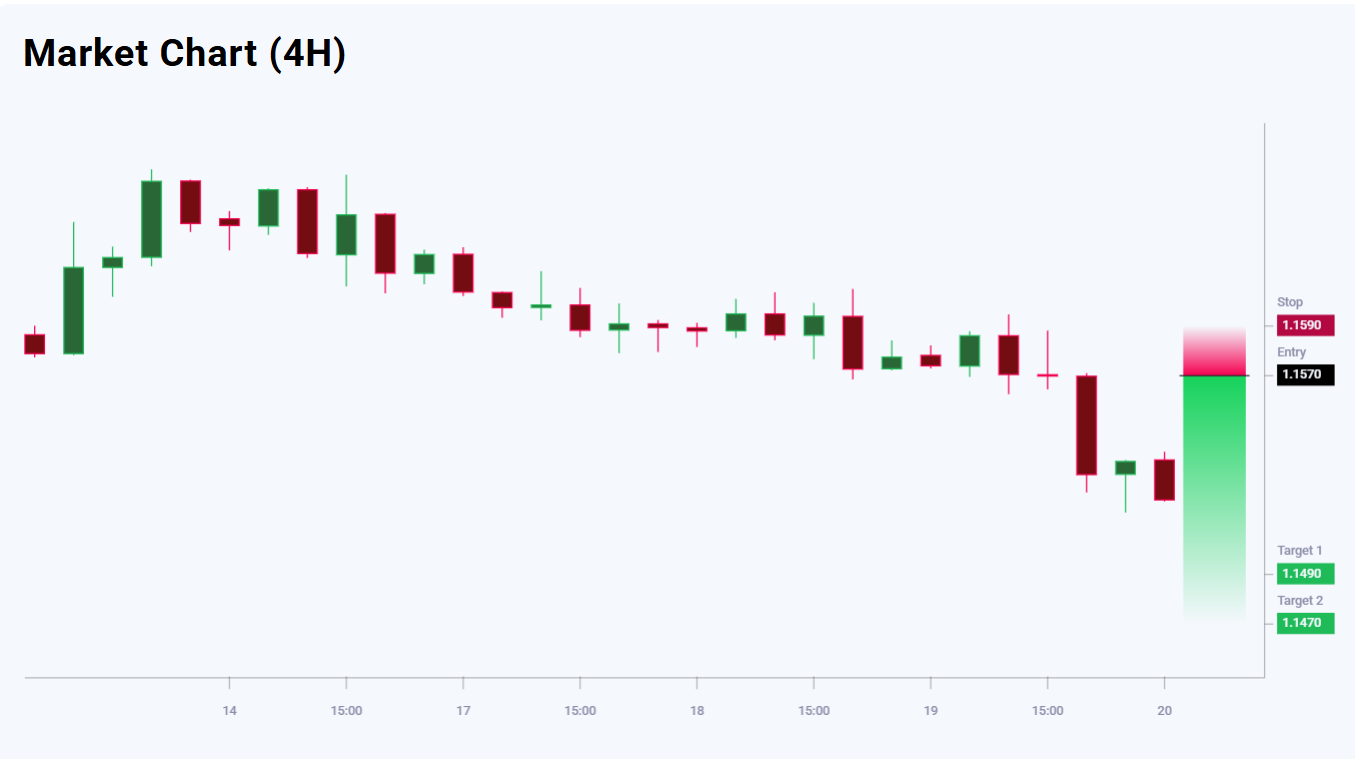 มุมมองของตลาดต่อ EURUSD แสดงอคติขาลง – 67% เทียบกับ 33% อัตราส่วนความเสี่ยงต่อผลตอบแทนอยู่ที่ 1:5 กำไรที่เป็นไปได้คือ 90 จุดสำหรับเป้าหมายแรก และ 100 จุดสำหรับเป้าหมายที่สอง โดยขาดทุนจำกัดไว้ที่ 20 จุด