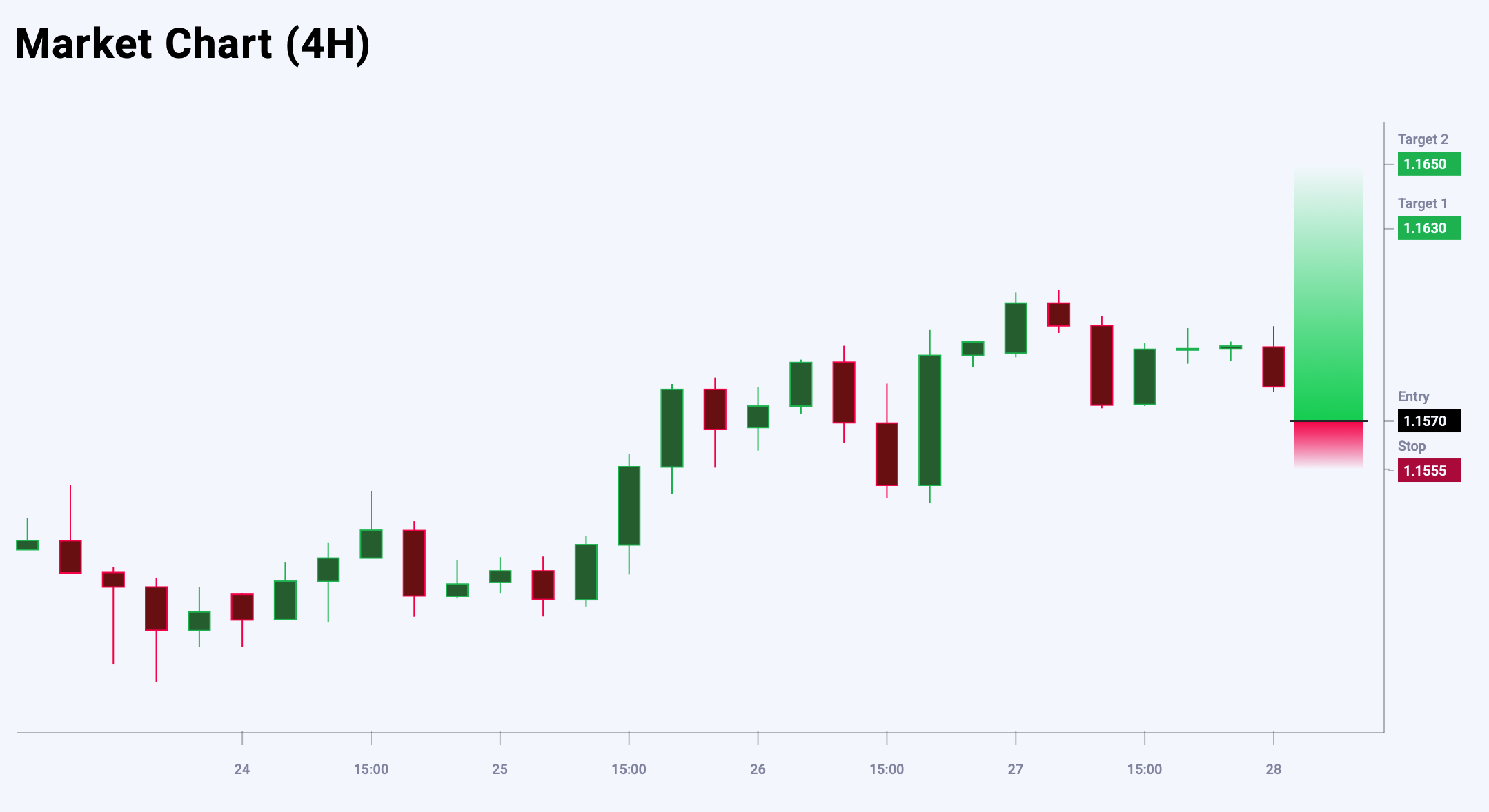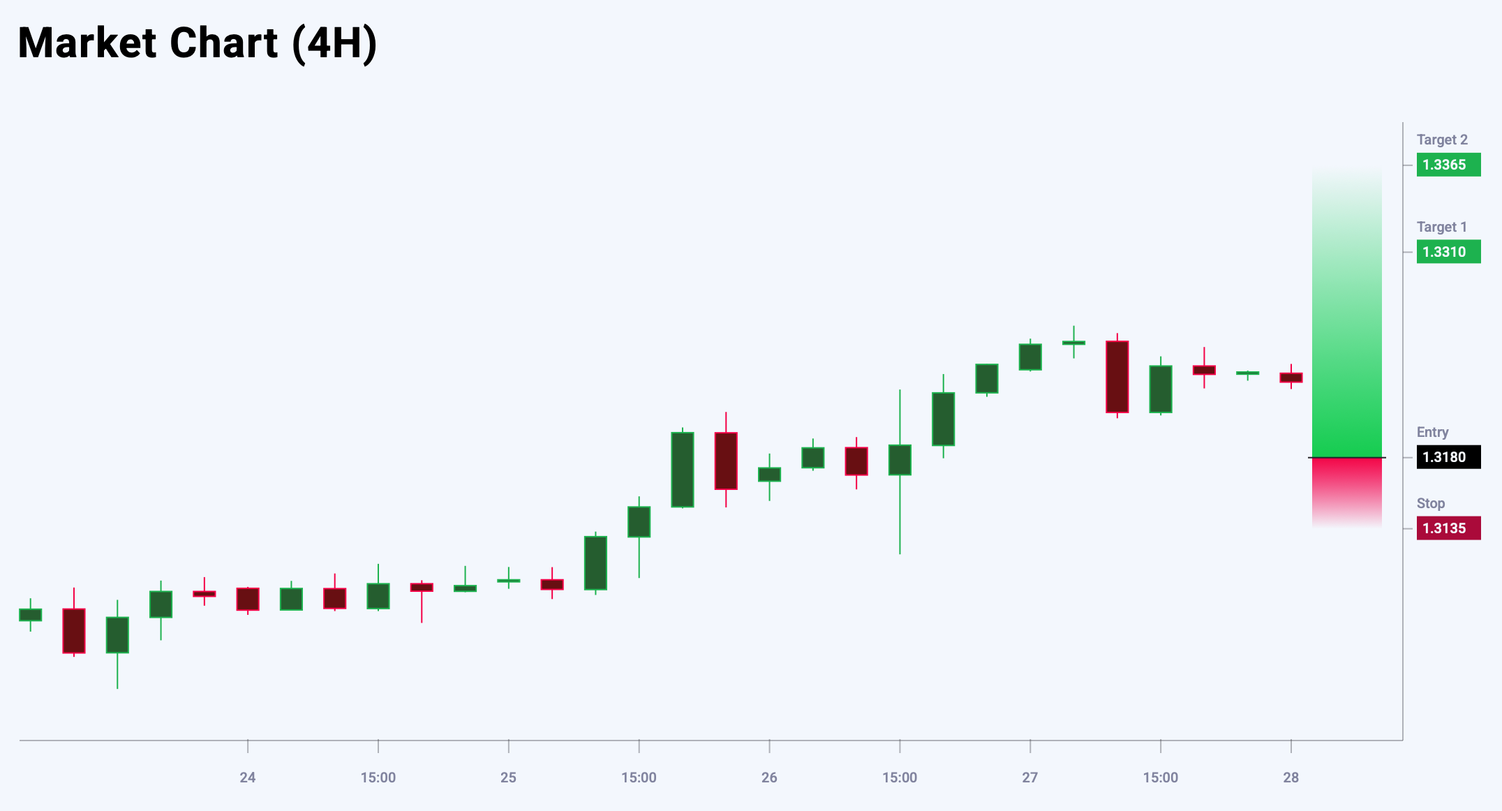 มุมมองตลาดต่อ GBPUSD แสดงอคติขาขึ้น – 54% เทียบกับ 46% อัตราส่วนความเสี่ยงต่อผลตอบแทนมากกว่า 1:4 กำไรที่เป็นไปได้คือ 130 จุดสำหรับเป้าหมายแรก และ 185 จุดสำหรับเป้าหมายที่สอง โดยขาดทุนจำกัดไว้ที่ 45 จุด