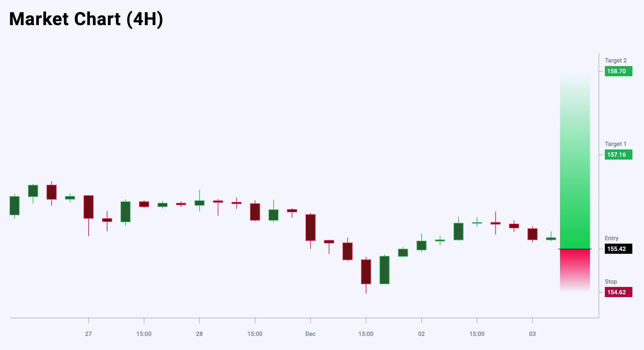 มุมมองตลาดต่อ USDJPY แสดงอคติขาลง – 59% เทียบกับ 41% อัตราส่วนความเสี่ยงต่อผลตอบแทนมากกว่า 1:4 กำไรที่เป็นไปได้ 174 จุดที่เป้าหมายแรก และ 328 จุดที่เป้าหมายที่สอง โดยขาดทุนจำกัดที่ 80 จุด