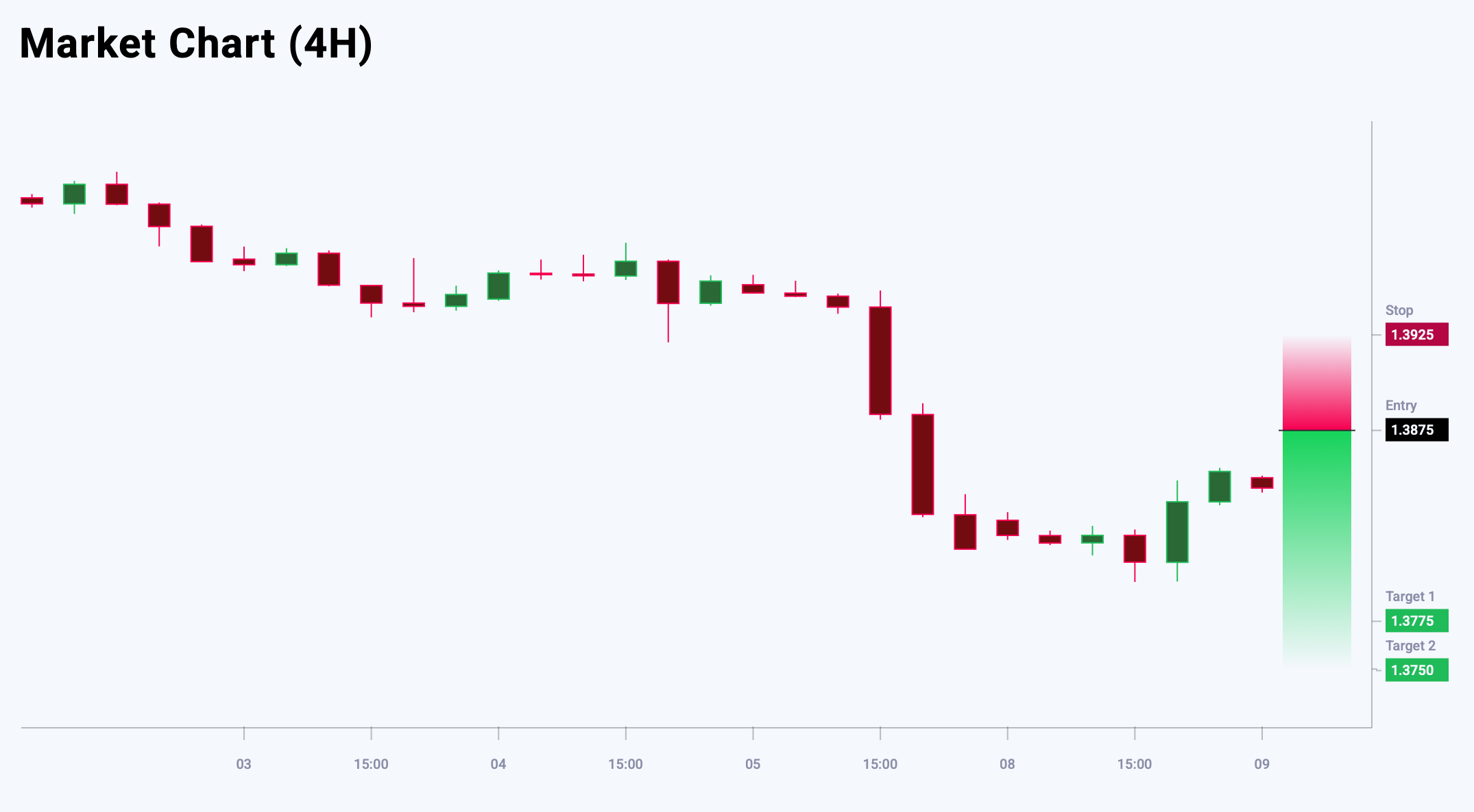 ยังไม่มีสัญญาณชัดเจนว่าขาลงของคู่เงิน USDCAD จะสิ้นสุด แม้ว่า Sentiment โดยรวมจะยังเป็นขาลง แต่มีโอกาสเกิดการปรับตัวขึ้นระยะสั้น ซึ่งไม่เพียงพอที่จะเปลี่ยนทิศทางเทรนด์ได้ ที่ระดับปัจจุบัน อัตราส่วนผลตอบแทนต่อความเสี่ยงสำหรับการเปิดสถานะขายยังไม่เหมาะสม การหลุดระดับ 1.3825 ลงไปจะยืนยันโมเมนตัมขาลง โดยมีเป้าหมายด้านล่างที่ 1.3750 ไอเดียการเทรด USDCAD วันนี้แนะนำให้ตั้ง Pending Order แบบ Sell Limit