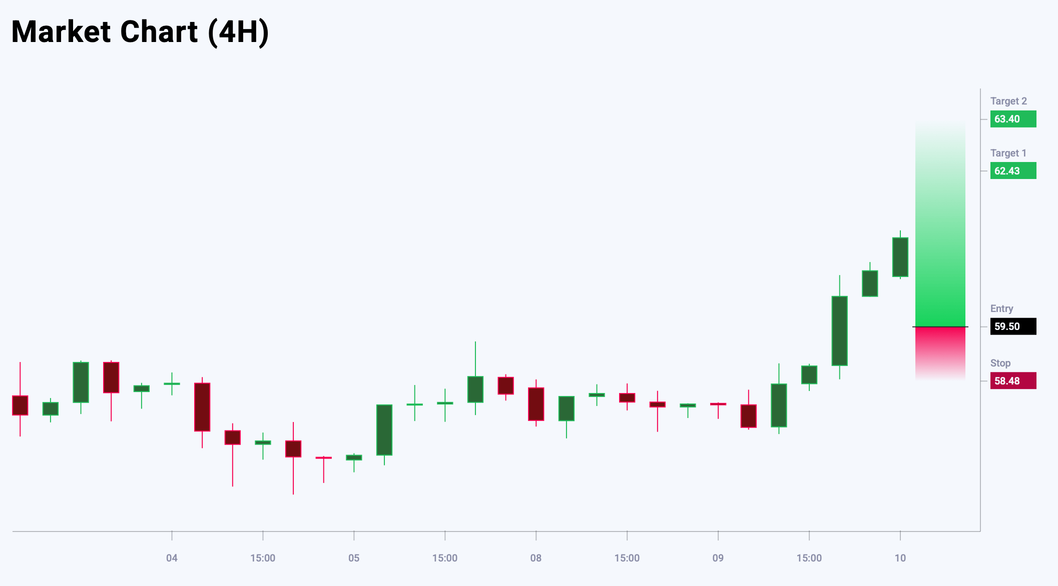 ราคา XAGUSD กำลังซื้อขายในเขตซื้อมากเกินไป คาดว่าจะเกิดการปรับฐานลงระยะสั้น แม้ว่าแนวโน้มหลักยังคงเป็นขาขึ้นก็ตาม แนะนำให้พิจารณาเปิดสถานะซื้อเมื่อราคาปรับตัวลง โดยใช้จุดหยุดขาดทุนที่แคบ เพื่อคาดหวังการกลับตัวขึ้นต่อบริเวณแนวรับ 59.50 วันนี้แนวคิดการเทรด XAGUSD แนะนำให้ตั้งคำสั่ง Buy Limit