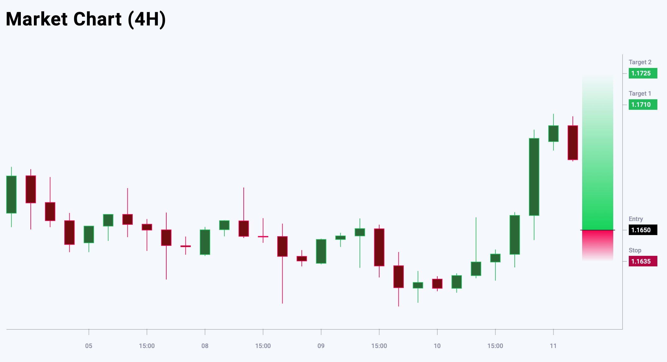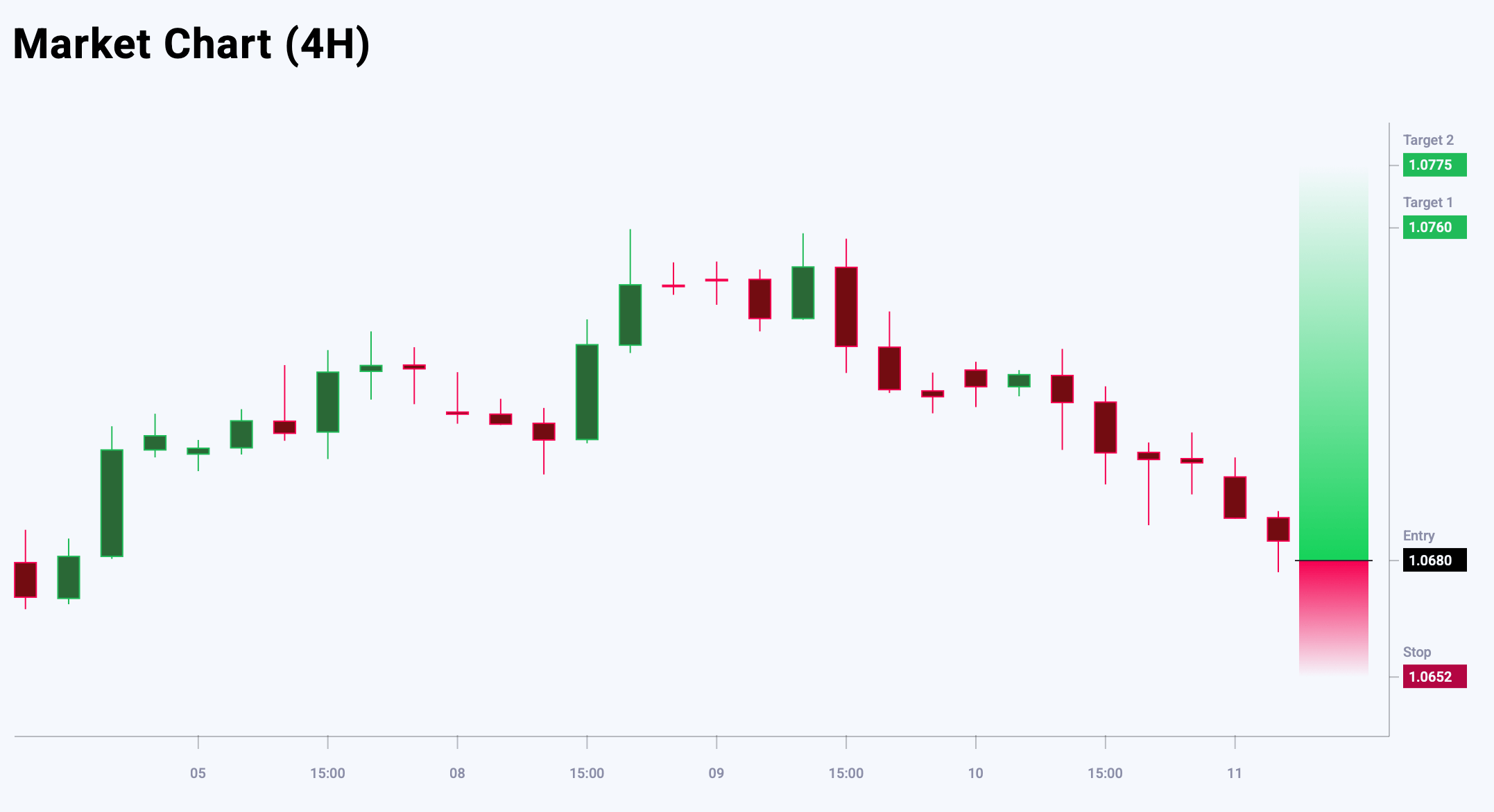 มุมมองตลาดต่อ EURUSD แสดงอคติขาลง — 54% เทียบกับ 46% อัตราส่วนความเสี่ยงต่อผลตอบแทน 1:5 กำไรที่เป็นไปได้ 60 จุดที่เป้าหมายแรก และ 75 จุดที่เป้าหมายที่สอง โดยขาดทุนจำกัดที่ 15 จุด