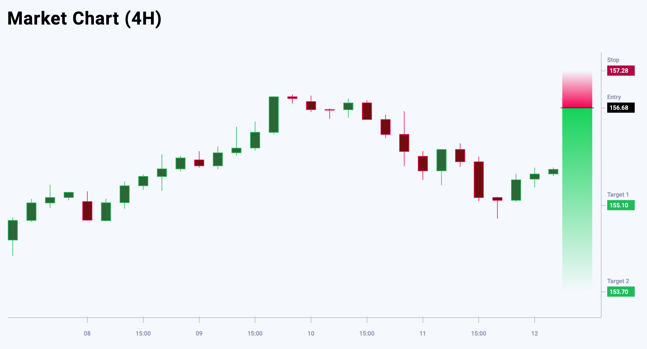 มุมมองตลาดต่อ USDJPY แสดงอคติขาลง — 57% เทียบกับ 43% อัตราส่วนความเสี่ยงต่อผลตอบแทนมากกว่า 1:4 กำไรที่เป็นไปได้ที่เป้าหมายแรก 158 จุด และที่เป้าหมายที่สอง 298 จุด ขณะที่การขาดทุนที่เป็นไปได้จำกัดที่ 60 จุด