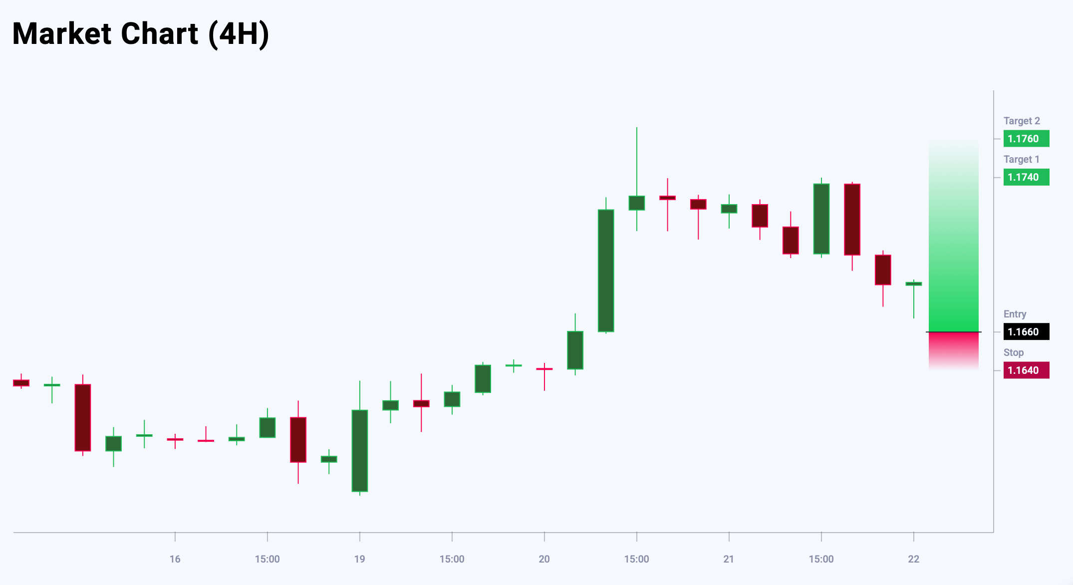 มุมมองของตลาดต่อ EURUSD แสดงถึงอคติฝั่งขาขึ้น – 52% เทียบกับ 48% อัตราส่วนความเสี่ยงต่อผลตอบแทนอยู่ที่ 1:5 กำไรที่เป็นไปได้อยู่ที่ 80 pips ที่ระดับทำกำไรแรก และ 100 pips ที่ระดับที่สอง ขณะที่การขาดทุนที่เป็นไปได้ถูกจำกัดไว้ที่ 20 pips