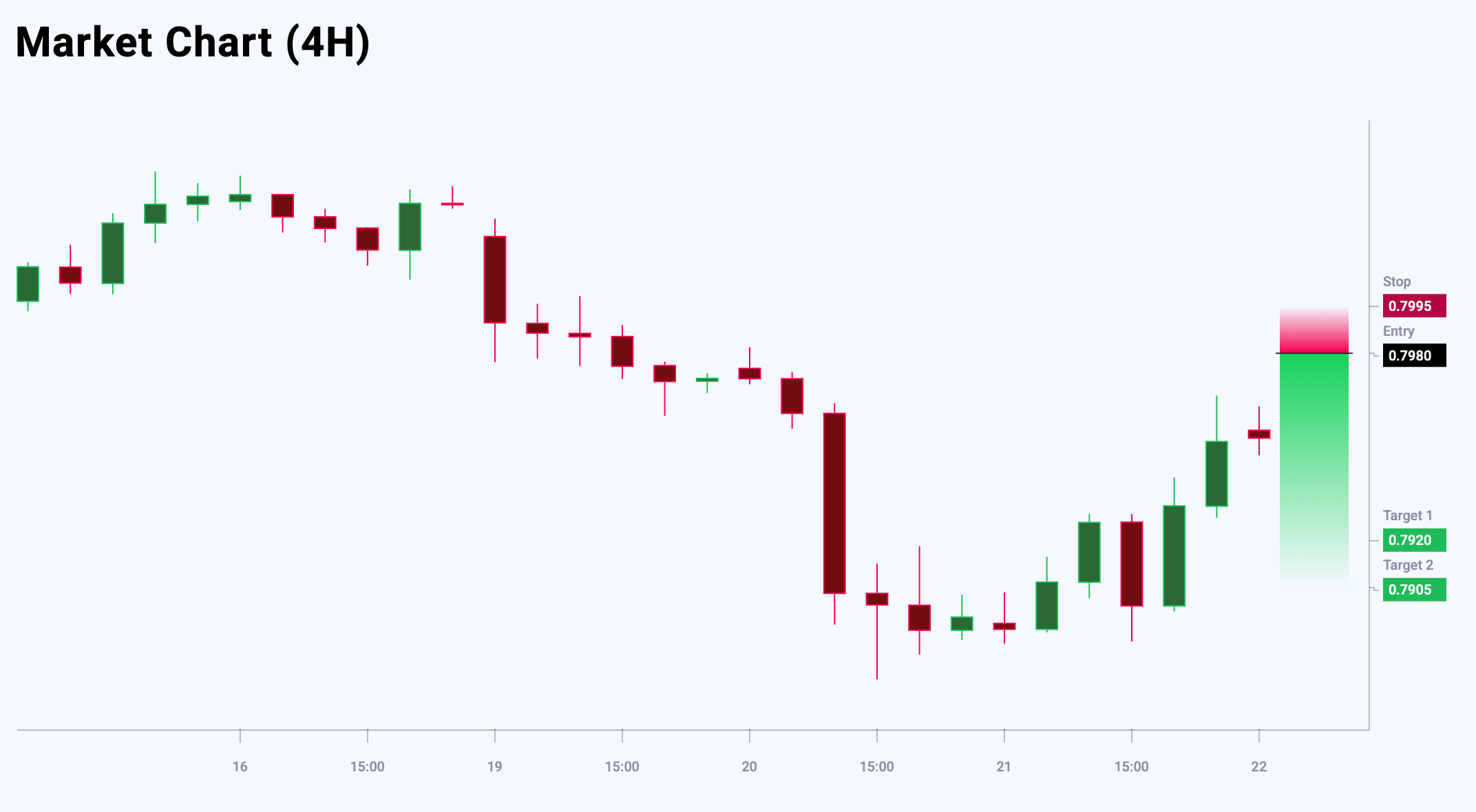 มุมมองในระยะกลางของคู่สกุลเงิน USDCHF ยังคงเป็นขาลง ตัวชี้วัด RSI ในระยะสั้นกำลังปรับตัวขึ้น ทำให้การเปิดสถานะขายในระดับราคาปัจจุบันไม่น่าสนใจเมื่อพิจารณาในแง่อัตราส่วนความเสี่ยงต่อผลตอบแทน ระดับแนวต้านสำคัญอยู่ที่ 0.7980 กลยุทธ์ที่เหมาะสมคือการขายเมื่อราคาดีดตัวขึ้น แนวคิดการเทรด USDCHF สำหรับวันนี้แนะนำให้วางคำสั่ง Sell Limit แบบรอดำเนินการ
