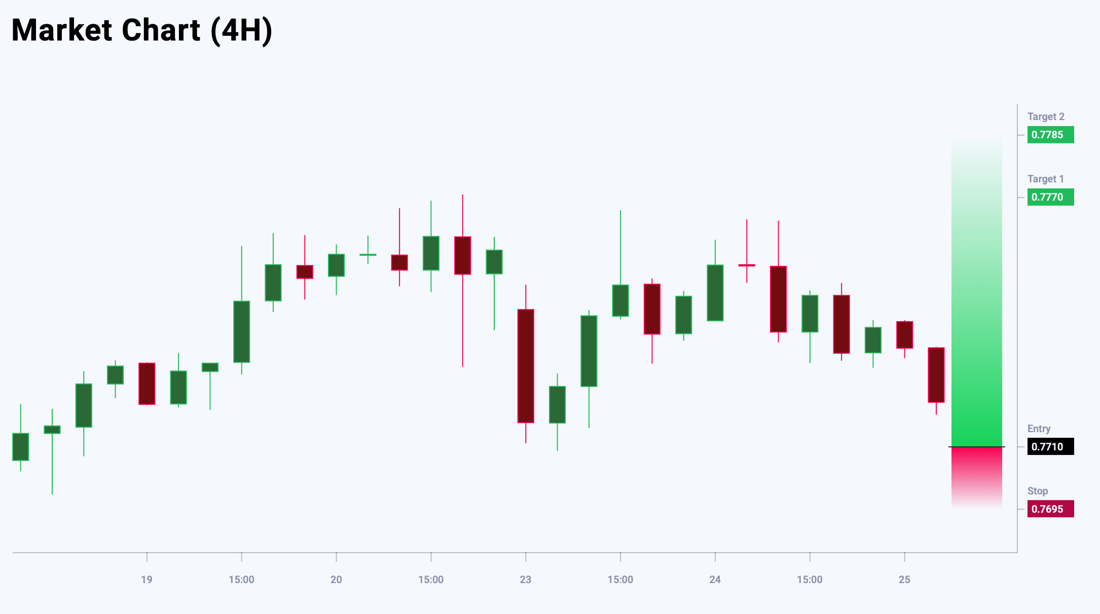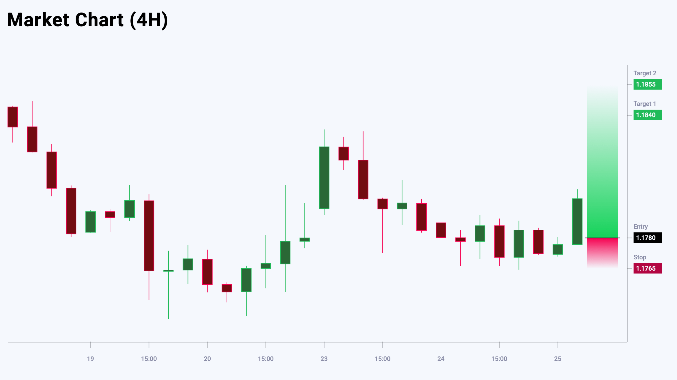 มุมมองตลาดต่อ EURUSD แสดงอคติขาลงที่ 65% เทียบกับ 35% อัตราส่วนความเสี่ยงต่อผลตอบแทนอยู่ที่ 1:5 กำไรที่เป็นไปได้อยู่ที่ 60 pips ที่ระดับทำกำไรแรก และ 75 pips ที่ระดับที่สอง ขณะที่การขาดทุนที่เป็นไปได้ถูกจำกัดไว้ที่ 15 pips