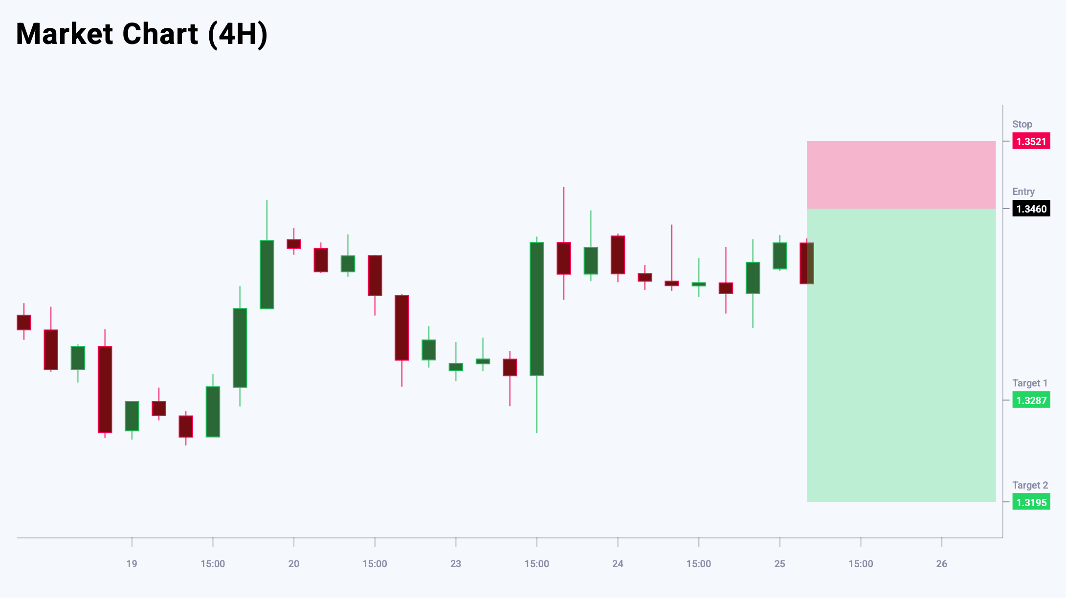 ข้อมูลข่าวสารสำหรับ GBPUSD แสดงถึงความคาดหวังขาลงที่มีมากกว่า — 53% เทียบกับ 47% อัตราส่วนความเสี่ยงต่อกำไรสูงสุดมากกว่า 1:4 กำไรที่เป็นไปได้เมื่อถึงระดับทำกำไรแรกคือ 173 จุด ระดับที่สอง 265 จุด ขณะที่การขาดทุนที่เป็นไปได้ถูกจำกัดไว้ที่ 61 จุด