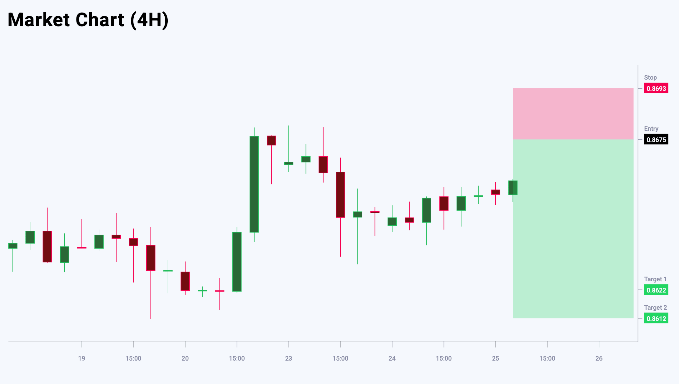 สำหรับ EURGBP ความเชื่อมั่นขาขึ้นมีมากกว่า — 52% เทียบกับ 48% อัตราส่วนความเสี่ยงต่อกำไรสูงสุดมากกว่า 1:3 กำไรที่เป็นไปได้เมื่อถึงระดับทำกำไรแรกคือ 53 จุด ระดับที่สอง 63 จุด ขณะที่การขาดทุนที่เป็นไปได้ถูกจำกัดไว้ที่ 18 จุด