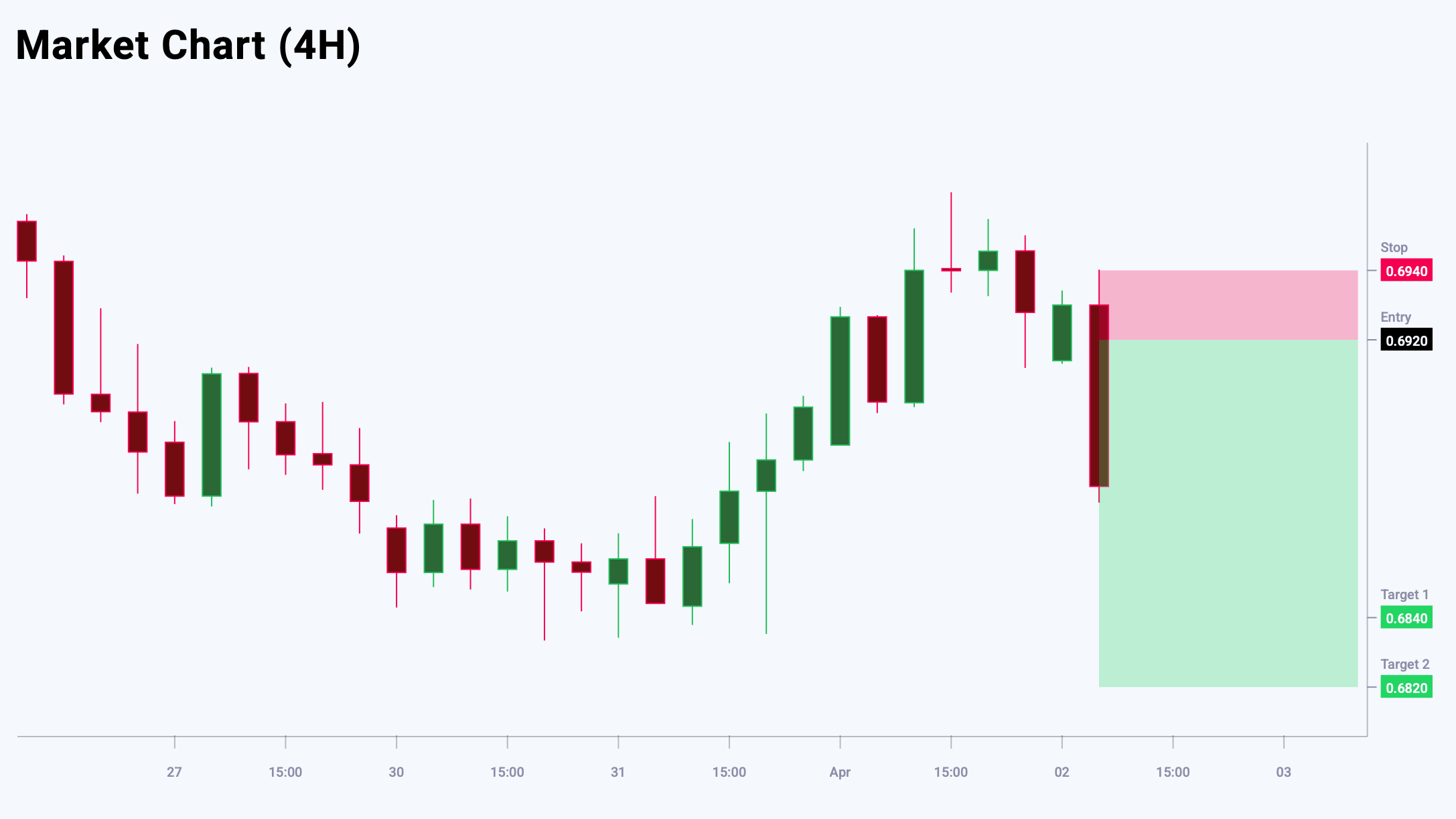 คู่เงิน AUDUSD ยังคงมีแนวโน้มขาลงในระยะกลาง อย่างไรก็ตาม โครงสร้างตลาดในปัจจุบันยังไม่เหมาะสำหรับการเปิดสถานะขายใหม่ในระดับปัจจุบัน อัตราส่วนความเสี่ยงต่อผลตอบแทนยังต่ำ ทำให้การเปิดสถานะขายไม่น่าสนใจ ในระยะสั้นมีโอกาสเกิดการปรับตัวขึ้นเชิงแก้ไข แต่คาดว่าจะเป็นเพียงชั่วคราว การปรับขึ้นดังกล่าวสามารถใช้เป็นโอกาสในการหาจุดเข้าเทรดที่ดีกว่าในทิศทางของแนวโน้มหลัก แนวต้านสำคัญอยู่ที่ระดับ 0.6920 ซึ่งคาดว่าแรงขายจะเพิ่มขึ้น แนวคิดการเทรด AUDUSD สำหรับวันนี้แนะนำให้วางคำสั่ง Sell Limit แบบรอดำเนินการ