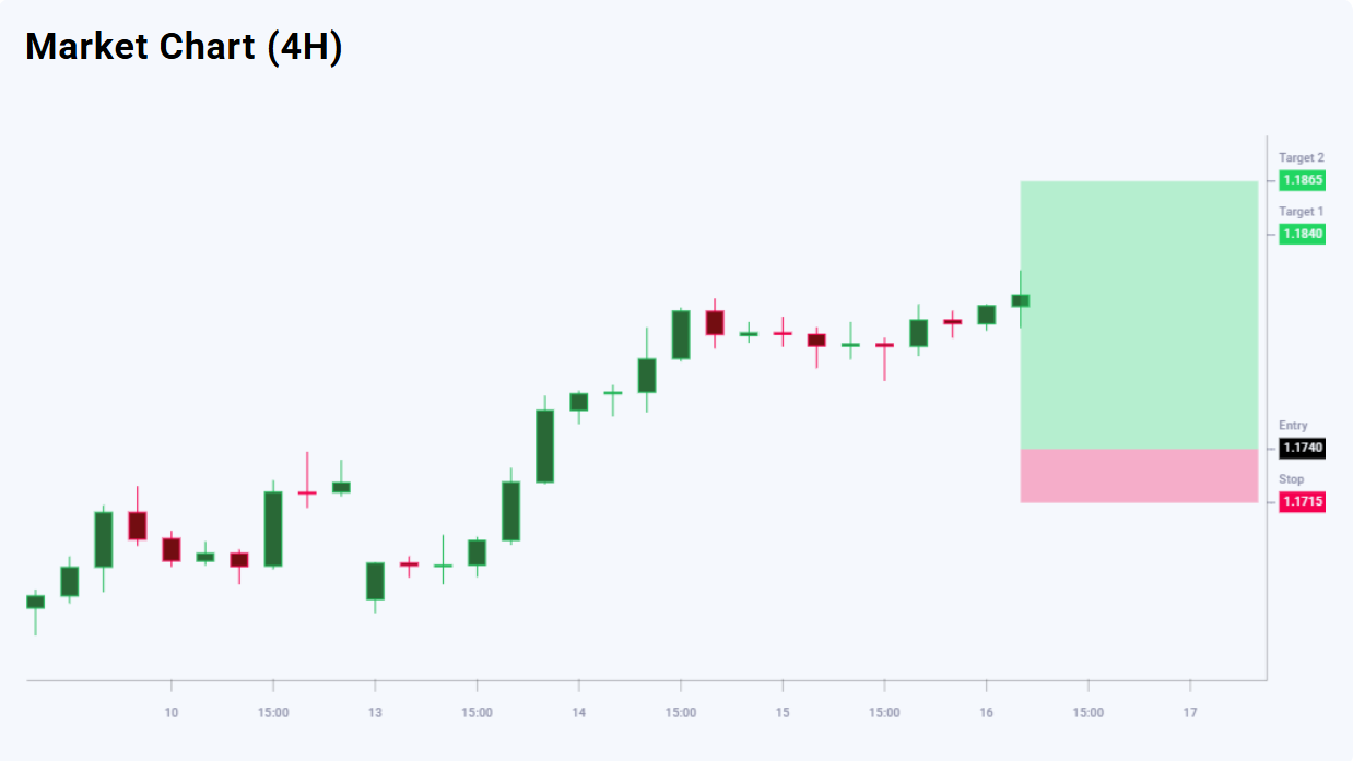 ระดับแนวรับอยู่ที่ 1.1740 ซึ่งถือเป็นโซนที่เหมาะสมสำหรับการเข้าซื้อเมื่อราคาย่อตัว ภายใต้บริบทนี้ แนวคิดการเทรด EURUSD สำหรับวันนี้แนะนำให้วางคำสั่ง Buy Limit แบบรอดำเนินการที่ 1.1740