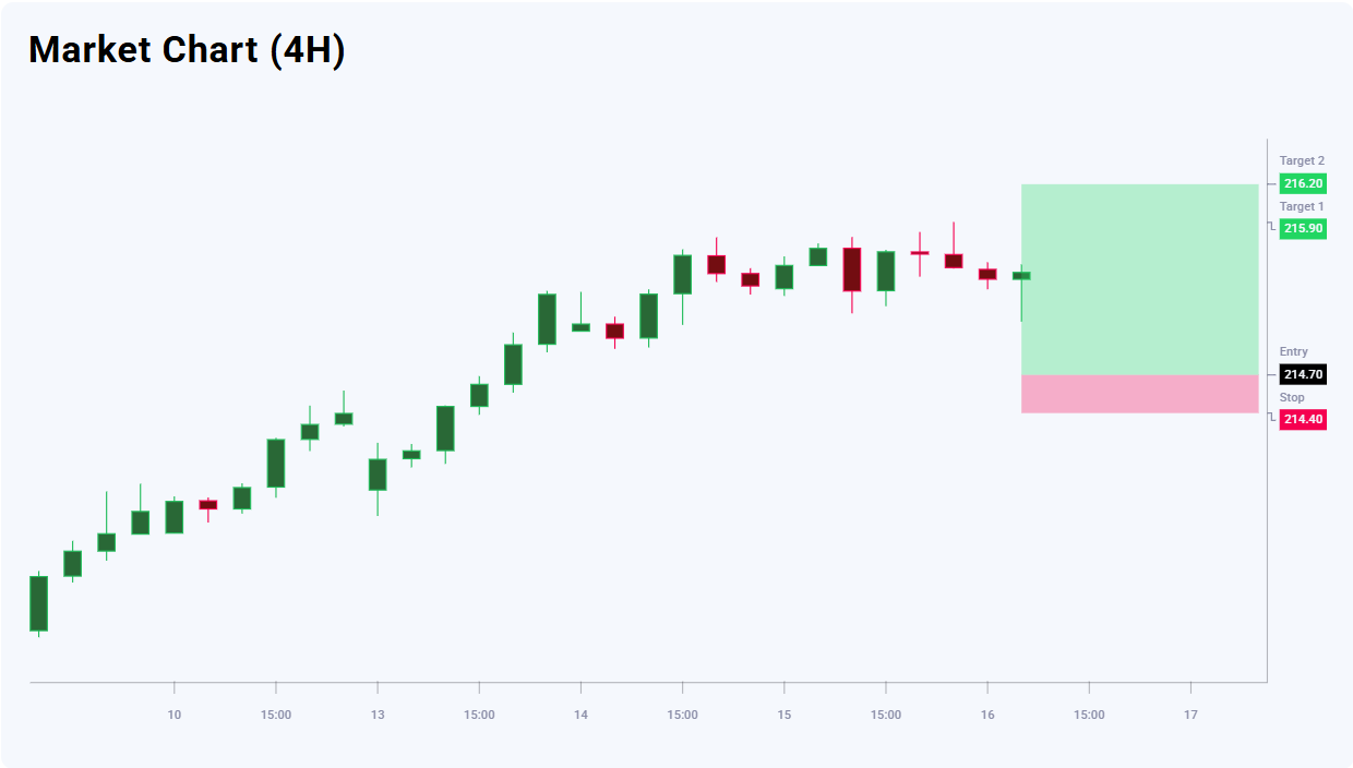 ด้วยเหตุนี้ การเข้าซื้อที่ระดับปัจจุบันจึงยังไม่คุ้มค่าในแง่อัตราส่วนความเสี่ยงต่อผลตอบแทน ขณะที่การย่อลงสู่บริเวณ 214.70 จะเป็นจุดเข้าที่เหมาะสมมากกว่า โดยระดับแนวรับสำคัญอยู่ที่ 214.70 และสถานการณ์หลักยังคงแนะนำให้ซื้อเมื่อราคาย่อตัว แนวคิดการเทรด GBPJPY สำหรับวันนี้แนะนำให้วางคำสั่ง Buy Limit แบบรอดำเนินการที่ 214.70