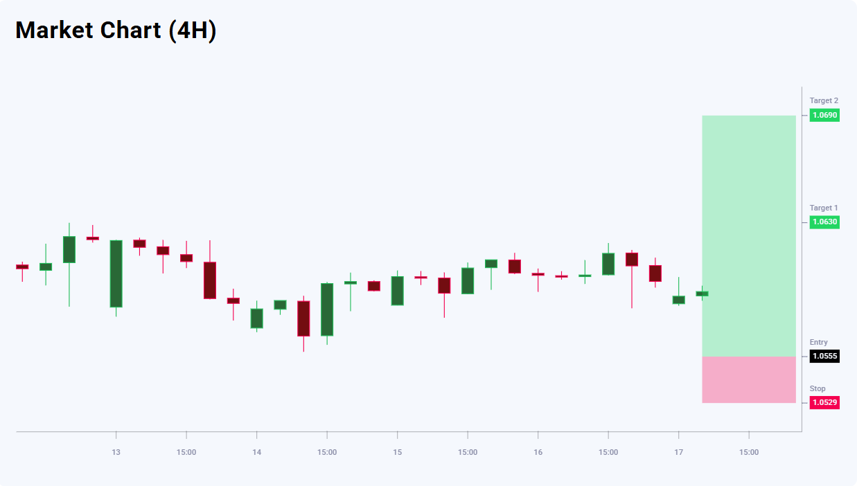ภายใต้บริบทนี้ การปรับลงที่คาดการณ์ไว้ยังดูเหมือนเป็นเพียงการย่อตัวในกรอบ มากกว่าการกลับตัวของแนวโน้มเต็มรูปแบบ ดังนั้น กลยุทธ์หลักคือการมองหาจังหวะซื้อเมื่อราคาย่อตัวลงสู่โซนแนวรับ 1.0555