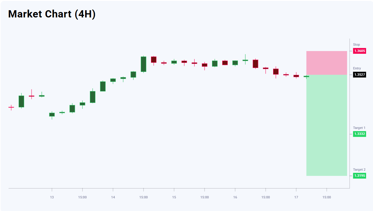 แนวคิดการเทรด GBPUSD สำหรับวันนี้แนะนำให้วางคำสั่ง Sell Limit แบบรอดำเนินการที่ 1.3527