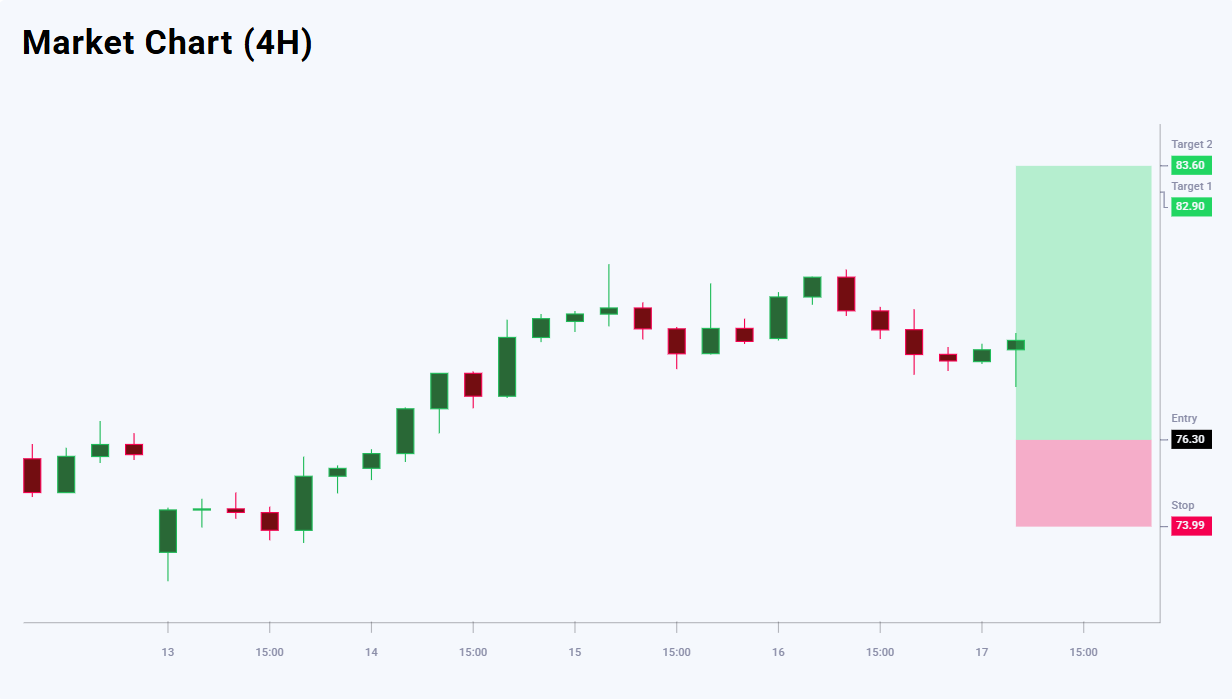 ข้อมูลข่าวสำหรับ XAGUSD แสดงถึงความเอนเอียงไปทางผู้ขายในระดับปานกลาง – 56% เทียบกับ 44% อย่างไรก็ตาม ภาพทางเทคนิคยังเปิดโอกาสให้แนวโน้มขาขึ้นกลับมาดำเนินต่อหลังการปรับฐาน ดีลนี้ถือว่าน่าสนใจในระดับปานกลางในแง่อัตราส่วนความเสี่ยงต่อผลตอบแทน เป้าหมายแรกที่ 82.90 ให้ศักยภาพกำไร 660 pips และเป้าหมายที่สองที่ 83.60 เพิ่มศักยภาพกำไรเป็น 730 pips จุดตัดขาดทุนที่ 73.99 จำกัดความเสี่ยงไว้ที่ 231 pips ซึ่งคิดเป็นอัตราส่วน 1:2.9 สำหรับเป้าหมายแรก และ 1:3.2 สำหรับเป้าหมายที่สอง