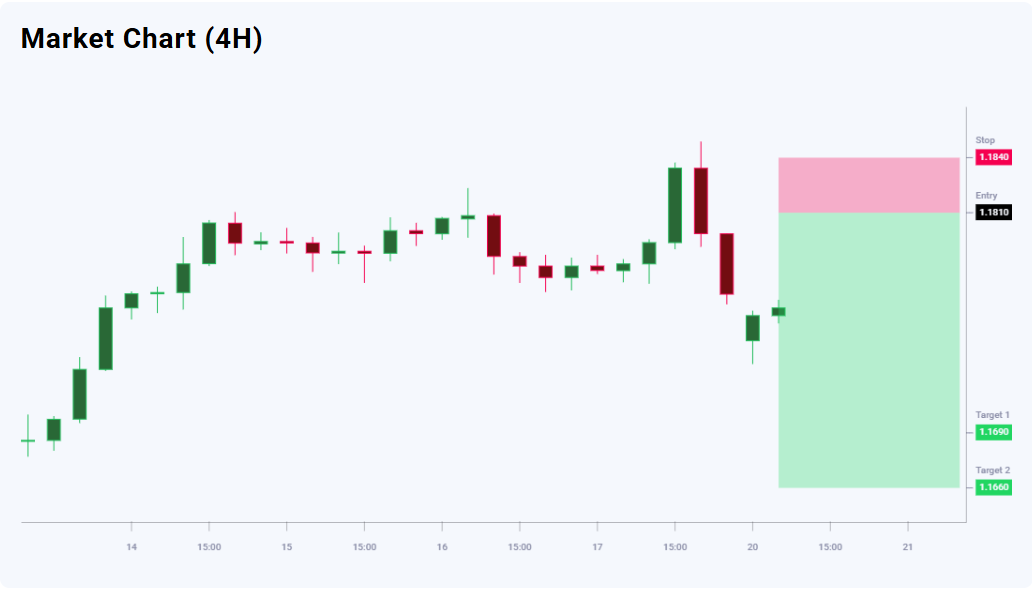 การเปิดสถานะขายในระดับปัจจุบันไม่คุ้มค่าในแง่อัตราส่วนความเสี่ยงต่อผลตอบแทน ดังนั้นกลยุทธ์ที่เหมาะสมคือการรอขายเมื่อราคาปรับขึ้น โดยมีแนวต้านสำคัญที่ 1.1810